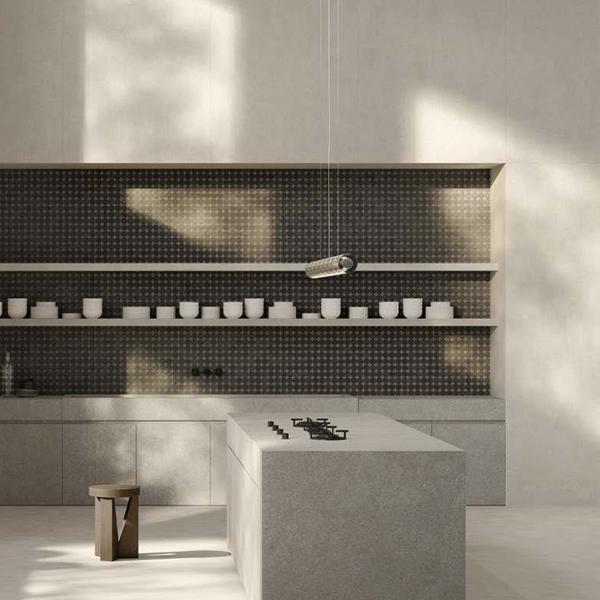 Elisa Ossino has designed Boost Expression for Atlas Concorde, a collection that emphasises tonal variations and the material and decorative qualities of surfaces. The pattern of each piece becomes a narrative of light and touch, flowing over the relief texture, identifying geometric motifs, dynamic trends.